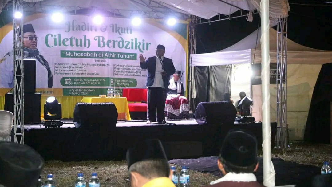 Seputarankita.com – SUKABUMI – Pemerintah Kabupaten Sukabumi menggelar acara Ciletuh Berdzikir pada malam pergantian tahun 2024-2025 di Rest Area Cimarinjung, Kecamatan Ciemas, pada Selasa, 31 Desember 2024. Acara yang berlangsung khidmat ini bertujuan untuk merenung dan bermuhasabah atas bencana alam yang melanda sejumlah wilayah Kabupaten Sukabumi sepanjang tahun 2024.