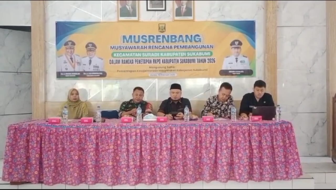 Musrebangcam ini berlangsung di Aula Kelurahan Surade, Kecamatan Surade Kabupaten Sukabumi, mengusung tema ” Pemantapan Kesejahteraan Masyarakat Kabupaten Sukabumi”. yang bertujuan untuk mewujudkan sinergi antara aspirasi yang menjadi usulan dengan rencana pembangunan daerah.