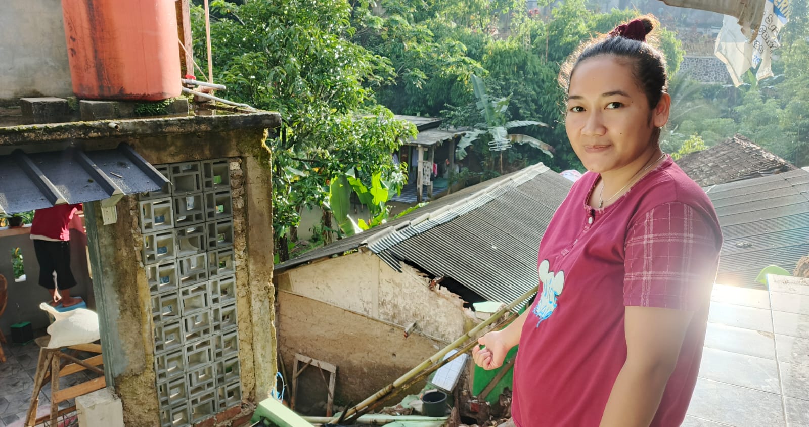 “Sore sebelumnya saya melihat ada retakan kecil, lalu subuh terdengar suara gemuruh, dan ternyata dindingnya sudah roboh,” ujarnya.