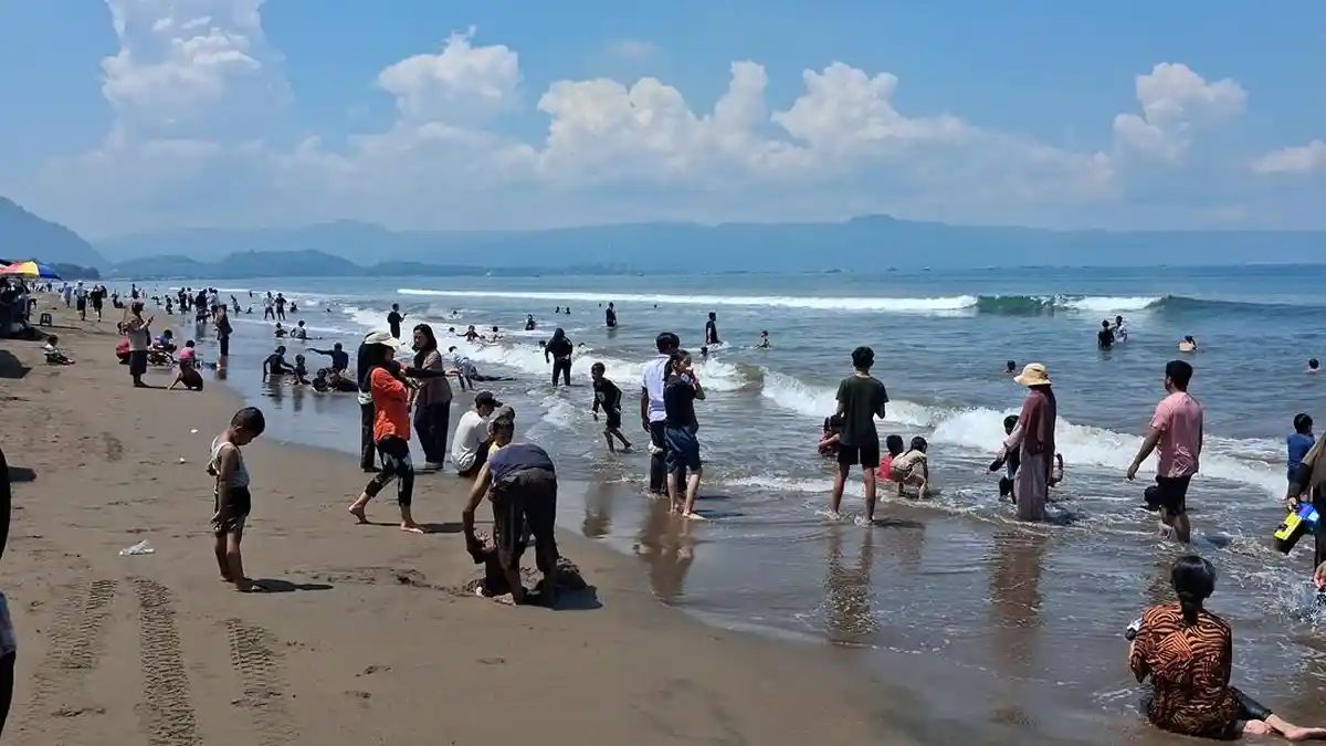 “Suasananya sangat ramai, didominasi keluarga yang membawa anak-anak. Parkiran di area pantai juga mulai penuh sesak sejak pukul 11.00 WIB tadi,” lapor salah satu pantauan di lokasi.