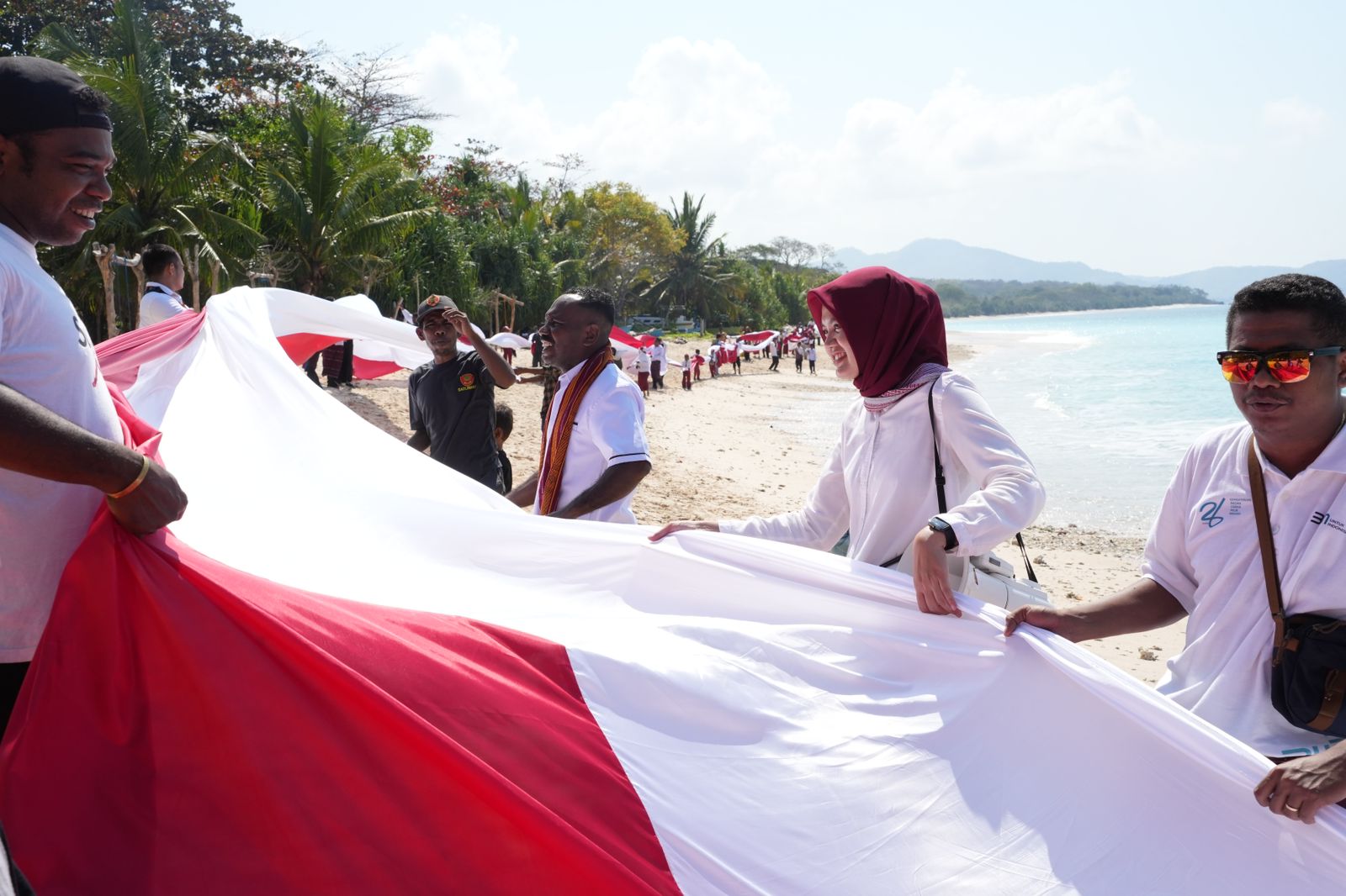 Seputarankita.com, Lembata– Dalam rangka memeriahkan Hari Ulang Tahun (HUT) Ke-79 Republik Indonesia, masyarakat Desa Wowong, Kecamatan Omesuri, Kabupaten Lembata, Nusa Tenggara Timur (NTT) pertama kali merayakan upacara dengan membentangkan bendera merah putih sepanjang satu kilometer, Sabtu (17/8/2024). Pembentangan bendera raksasa tersebut dilakukan di bibir Pantai Nusantara.