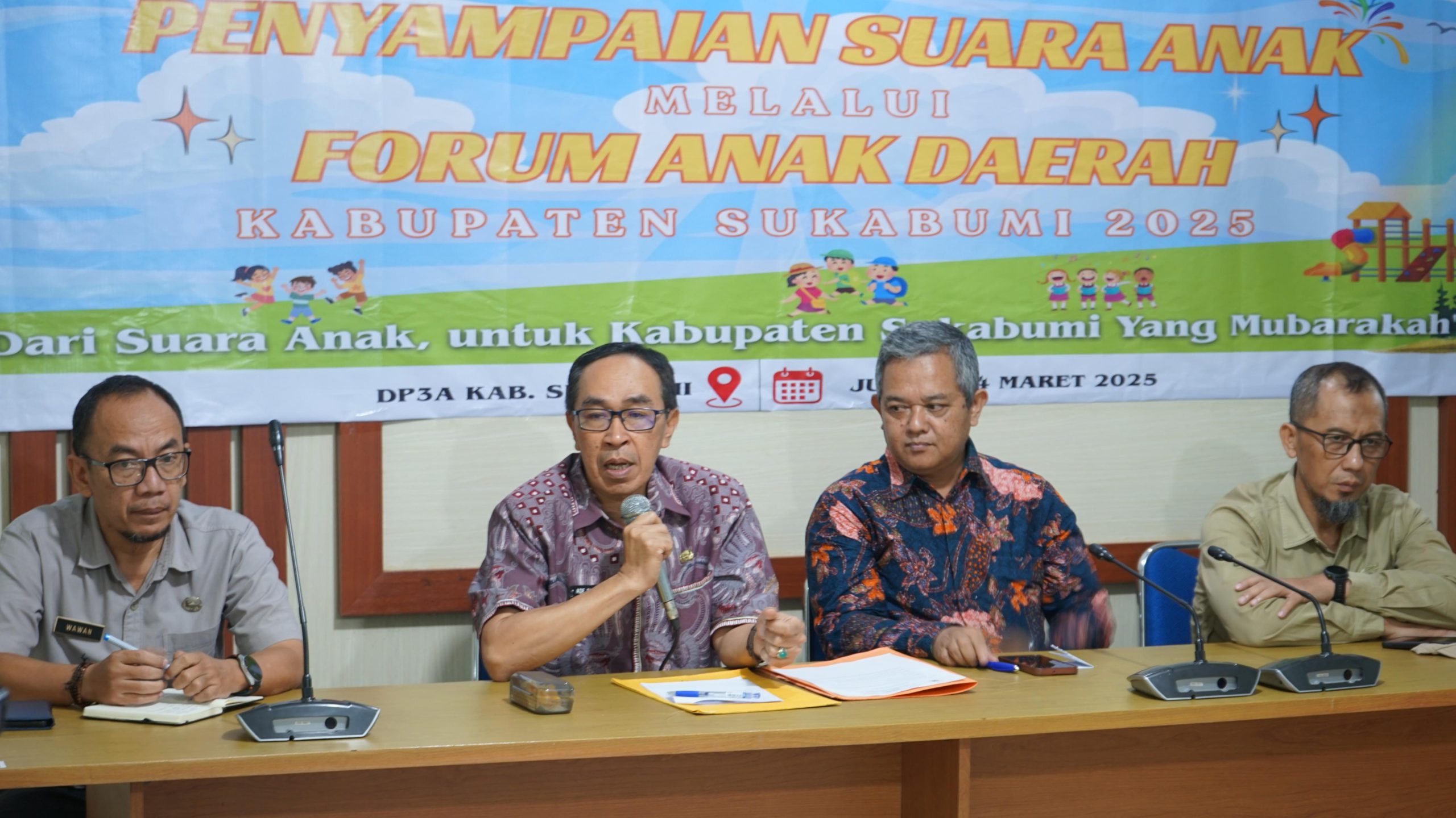 Pernyataan tersebut disampaikan dalam kegiatan “Suara Anak-Anak Kabupaten Sukabumi” di Aula Dinas Pemberdayaan Perempuan dan Perlindungan Anak (DP3A), Jumat (14/3/2025).
