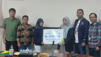 seputarankita.com – BPJS Ketenagakerjaan Cabang Sukabumi menyerahkan santunan Jaminan Kematian senilai Rp74 juta kepada istri…