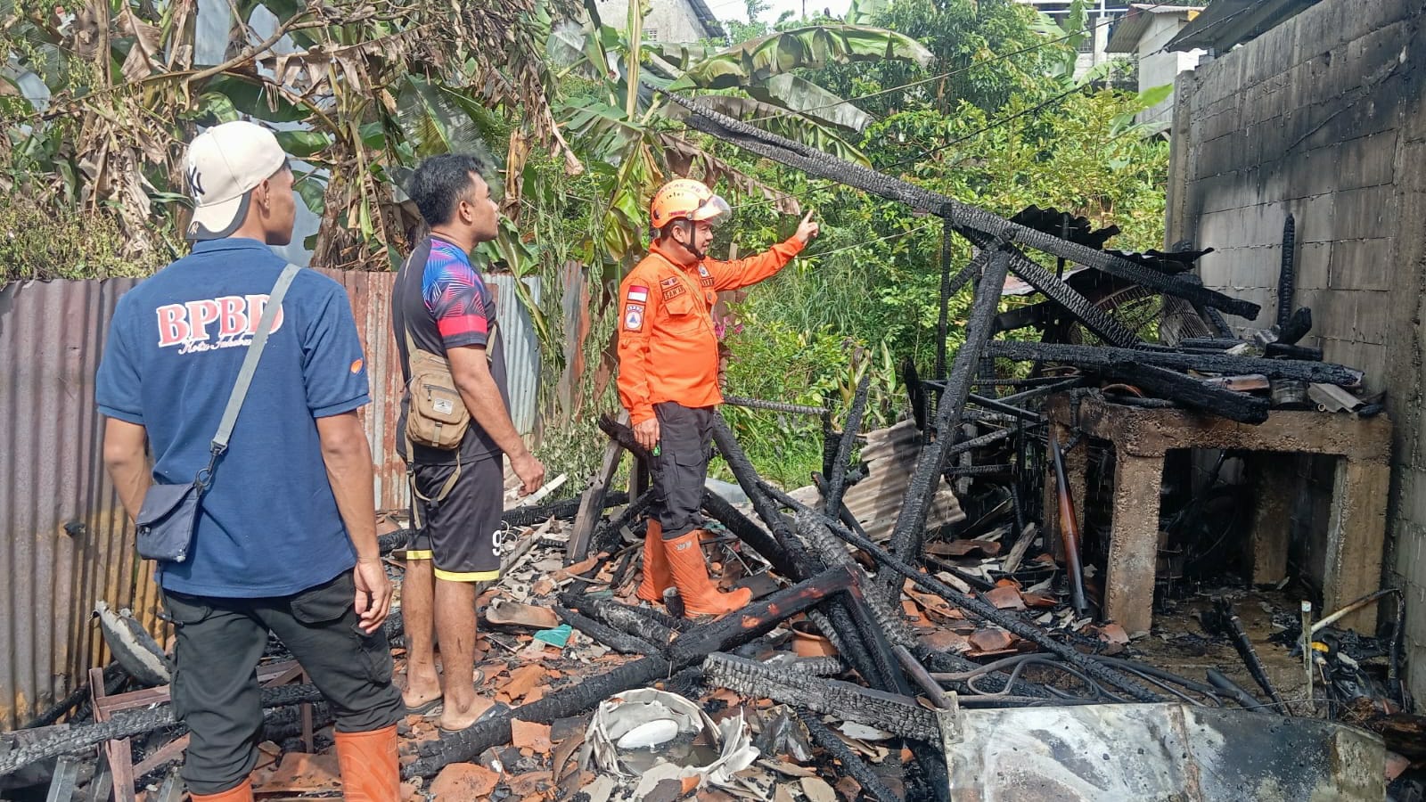 Tim BPBD Sukabumi bekerja sama dengan Damkar dan PLN untuk menangani kebakaran dan mengatasi gangguan listrik yang ditimbulkan.