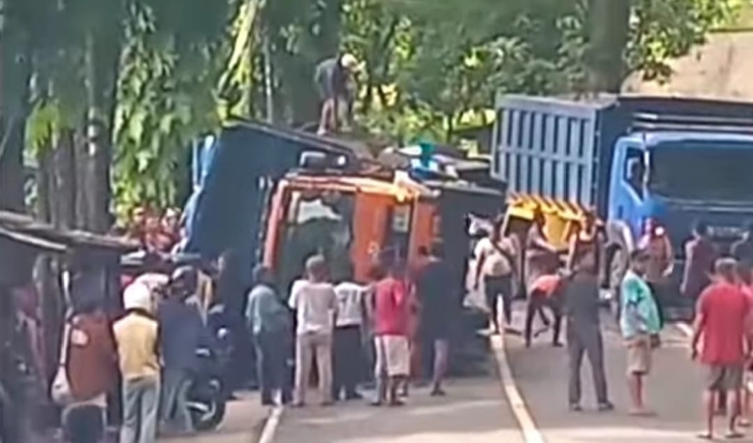 Seputarankita.com – SUKABUMI – Empat nyawa melayang saat sebuah truk bermuatan batu terguling dan menimpa sebuah minibus Suzuki Phanter warna biru yang berpenumpang sekitar 10 orang. Peristiwa terjadi di Jalan Pasir Suren Kecamatan Bantargadung Kabupaten Sukabumi, Sabtu (8/2/2025).